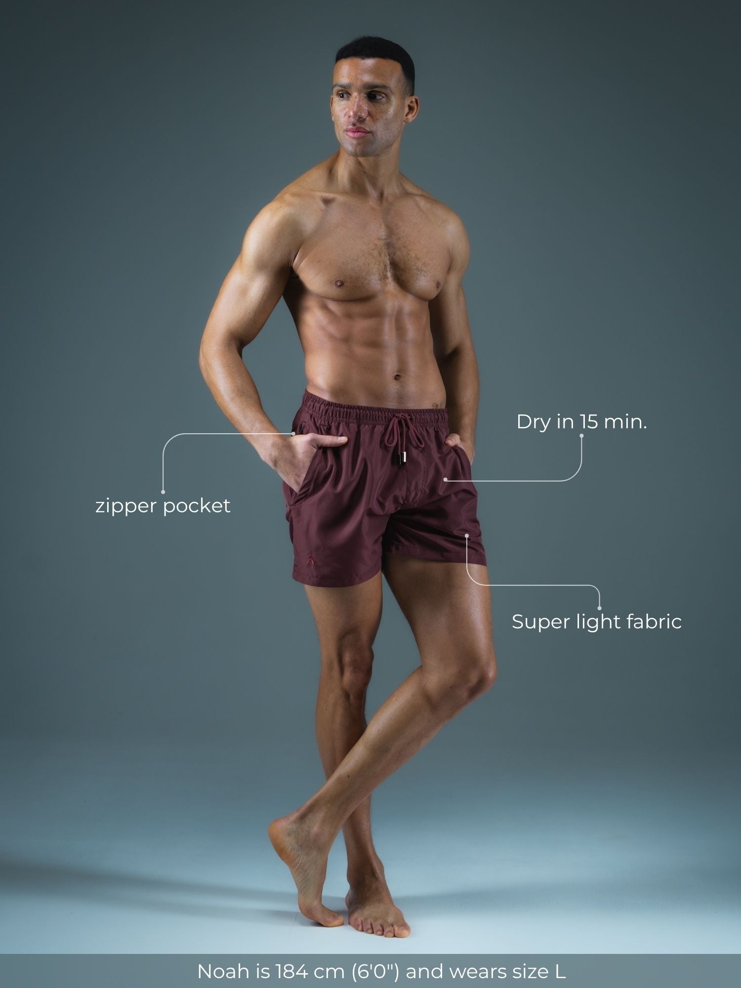 De diepe pruimtint van deze zwemshort roept de warme kleuren op van Zuid-Italiaanse wijngaarden bij zonsondergang en combineert diepte met ingetogen elegantie. Gemaakt van 100% ultra-licht polyester en voorzien van geavanceerde sneldrogende technologie, biedt deze zwemshort uitzonderlijk comfort van strand tot terras. Ontworpen met een regular fit en een praktische ritszak voor extra functionaliteit. Tijdloos, verfijnd en doordrenkt met de sfeer van Zuid-Italië. Made in Italy.